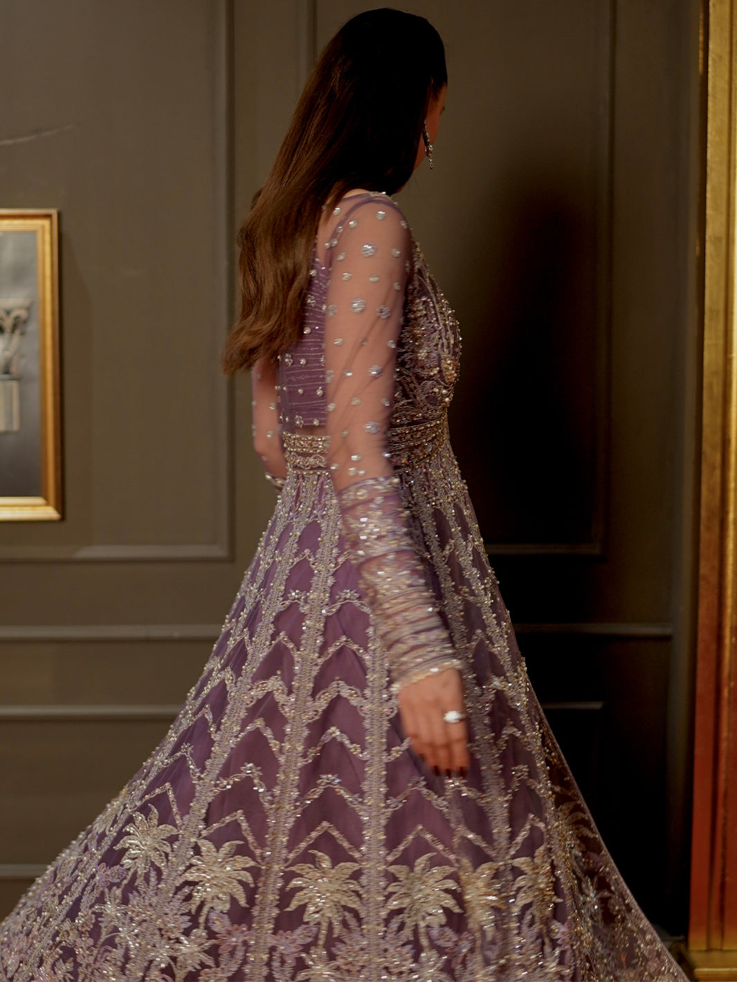 2 Sleeves Embroidered and Embellished on Net Fabric